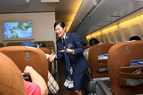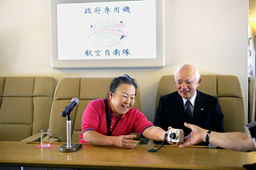| あの政府専用機がバージョンアップしたのを機にクルーの訓練も兼ねた4時間の千歳基地発千歳戻りの本州四国一周フライトに体験搭乗させていただいた。政府専用機にはそれまで何度か搭乗したが、実際フライトできたのはこのときが初めて。 | |