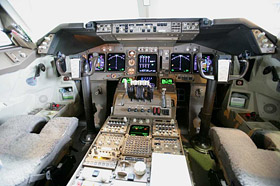 これが政府専用機のコックピットや。民間のジャンボのコックピット見たことないから違いがわからんが。 |